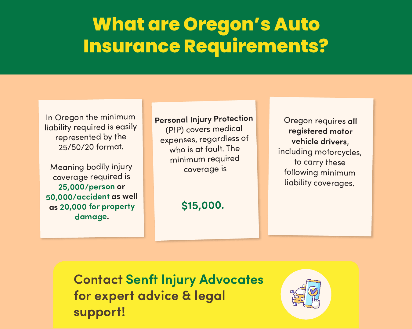 If you’ve been in an accident and need help understanding how Oregon’s automobile insurance requirements impact your case, don’t hesitate to call Senft Legal. Offering 24/7 availability and a 100% free consultation, we’re here to help you make sense of your coverage and answer any questions you may have. Our team is ready to guide you through the recovery process, and stand with you to advocate for fair car accident compensation in Oregon.